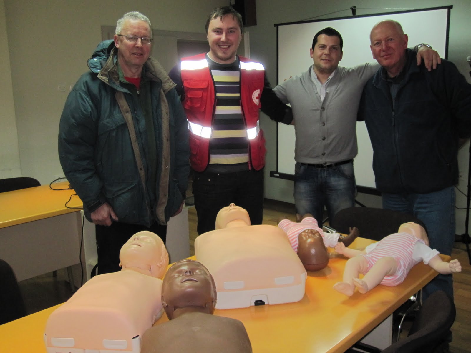 They were joking about being treated like saints but it did seem like they had performed a miracle, getting a slew of equipment for firefighting and lifesaving across Europe to Macedonia. By "they" I mean Bruce and his colleague (far right and left in the photo above) who are members of a group named Operation Florian, which provides training and equipment for improving firefighting worldwide. These guys drove literally for days, including 15 hours in Serbian customs, from England with gear for fire departments throughout Macedonia. Happily, they also managed to bring 5 CPR dummies for Red Cross Bitola!